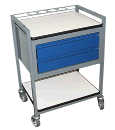 Carro de curaciones de un cajon con dos planos de acero inoxidable. medidas: 60 a x 48 prof.x 90 alt..