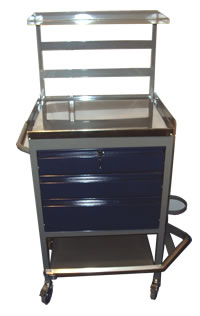 - Carro de paro de tres cajones, uno con divisiones para medicamentos