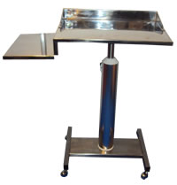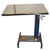 Mesa mayo de acero inoxidable con movimiento a manivela lateral.